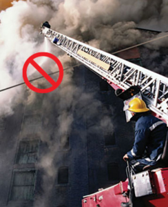 If your aerial equipment comes into contact with a power line and there is no fire or other imminent danger, take the following steps: