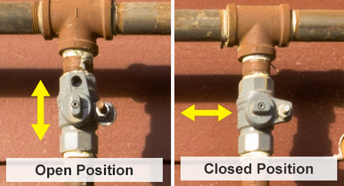 With all quarter-turn shutoff valves, the valve is open when the valve lug is in line with the gas pipe, and the valve is closed when the lug is crosswise to the pipe. Usually, moving the lug a quarter-turn to the right closes the valve.