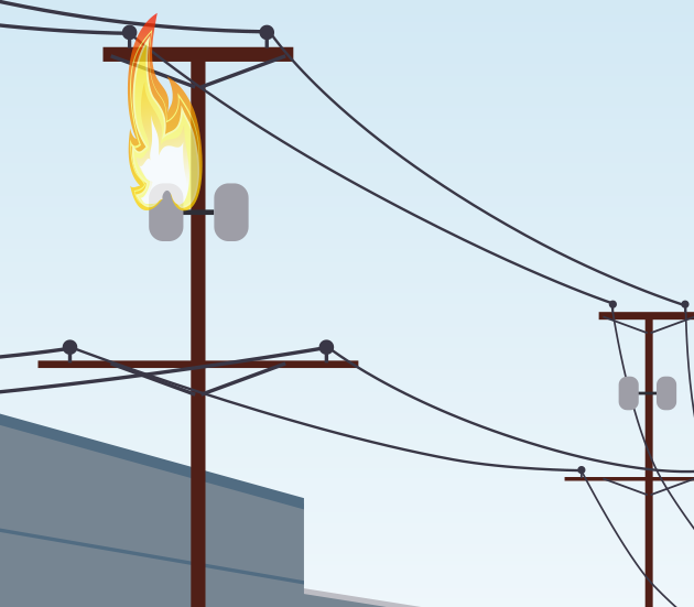 Burning utility poles may cause downed power lines. Follow these precautions: